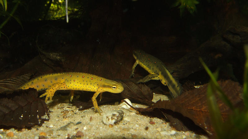 gestern habe ich nach sieben Wochen die Winterruhe bei den Notophthalmus beendet. Und ich kann heute schon sagen, dass ich zu knapp kalkuliert habe, die drei behaltenen NZ2013 Tiere sind leider alles Männchen. Damit werde ich den F2 Versuch wohl auf nächstes Jahr verschieben müssen, es sei denn es gelingt mir von den abgegebenen 2013er Tieren noch ein Weibchen zurück zu kaufen/tauschen.