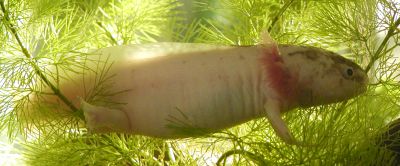 Hmmm... Fütterung mit Stinte? Ganz schlecht, nicht weils ein Stint ist, sondern weil die aus dem Meer kommen und damit jodhaltig sind. Ein verstärkter Kiefer könnte sich auch dann entwickeln, wenn das Tier in die Metamorphose kommt, so á la Tigersalamander. Ich hoffs nicht, denn so ne verkappte Metamorphose kann auch häufig tödlich enden:(
