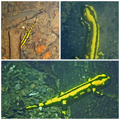 Auf 22m Wassertiefe, die über einen wassergefüllten Schacht (Gesenk) erreicht werden, gelangt man in einen ca. 60m langen Stollen. Hier befanden sich mehrere Larven vom Feuersalamander (Salamandra salamandra terrestris).