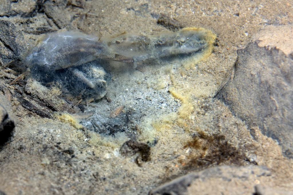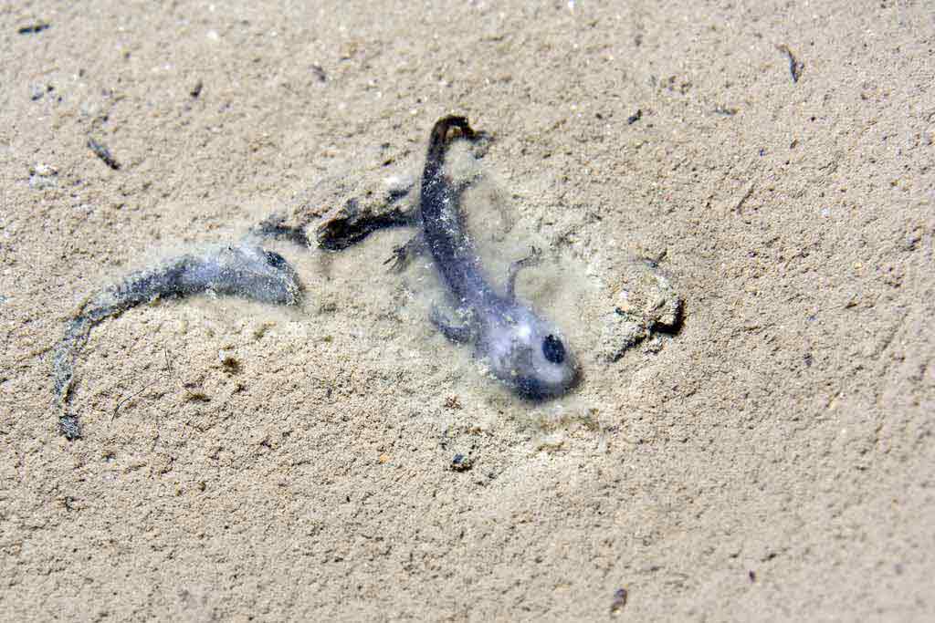 Wegen der Filmerei entfiel die übliche Zählung der Larven; nur nach den 4 großen Tieren wurde Ausschau gehalten.