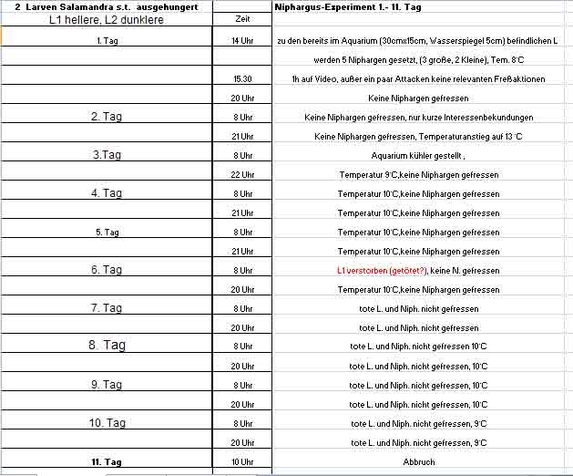 Mit weißen Mückenlarven ist das Problem ein anderes: dabei handelt es sich um Larven der Büschelmücken, die selbst räuberisch leben (z.B. von Daphnien) und Salamanderlarven auch angreifen können. Als ich das noch nicht wusste, habe ich dennoch mal weiße ML an (allerdings bereits etwas größere) Salamanderlarven verfüttert - die weißen ML wurden dann auch von den Feuersalamanderlarven gefressen. Ich würde es aber nicht mehr ausprobieren.der außerdem darauf verweist, dass er in der Zeitschrift TERRARIA gelesen habe, dass Feuersalamanderlarven Weiße Mückenlarven nicht fressen würden