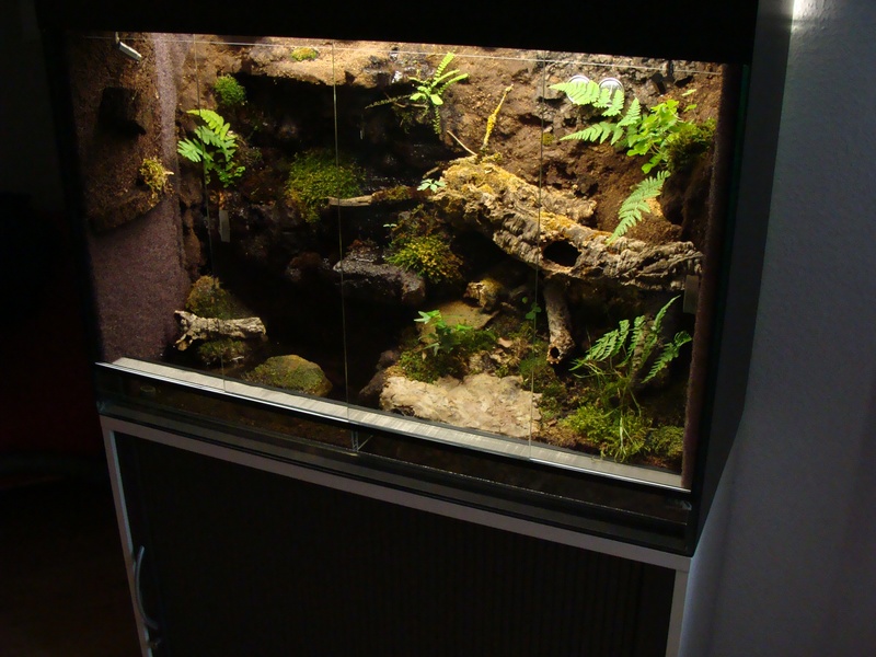 sieht zwar nicht unbedingt aus wie der heimische Wald aber toll ist es trotzdem und ich denke auch das sich die Salamander wohl fühlen werden aber ich bezweifle auch das die Tiere die Korkröhre nutzen werden.Das Problem mit dem zu großen Wasserteil hast du aber gut gelöst.