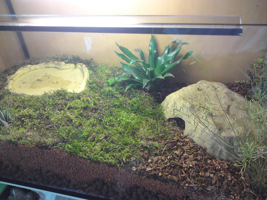 ja ich war heute beim arzt mit ihm...er hat gemeint dass er eine kotprobe von ihm haben möchte um genaueres sagen zu können...aber er tipp auf vitaminmangel...aber ich füttere ihn ja auch recht abwechslungsreich...habe meine haltung von ihm doch schon beschrieben...das terrarium weisst eine größe von 80X40 cm auf ist zu 70% mit moos gefüllt was immer gut befeuchtet ist...der unterschlupf von ihm ist trocken gehalten und als decko gibt es ein wenig rindenmulch wie du schon gesehen hast...