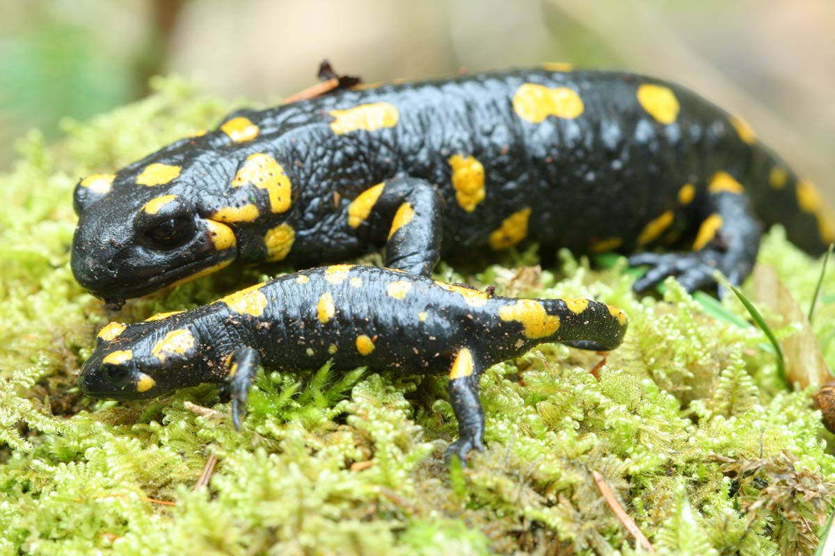 Auf den Bildern sind 3 bayrische S.s.salamandra zu sehen. Ich hatte sogar das Glück, sie bei bei Tageslicht vor die Linse zu kriegen. Der kleinste war nicht größer als 3 oder 4 cm - ein tapferes Kerlchen, das diesen harten Winter unbeschadet überstanden hat!