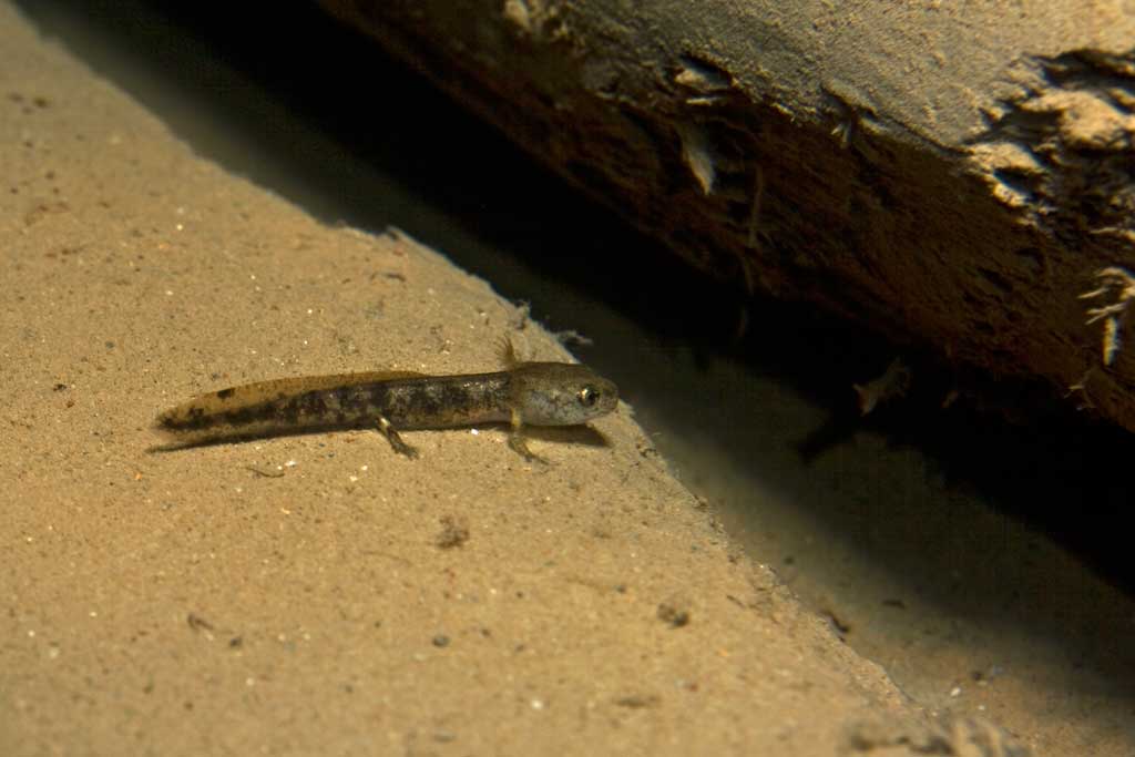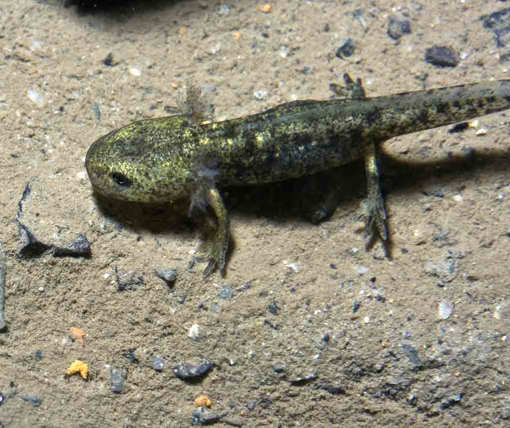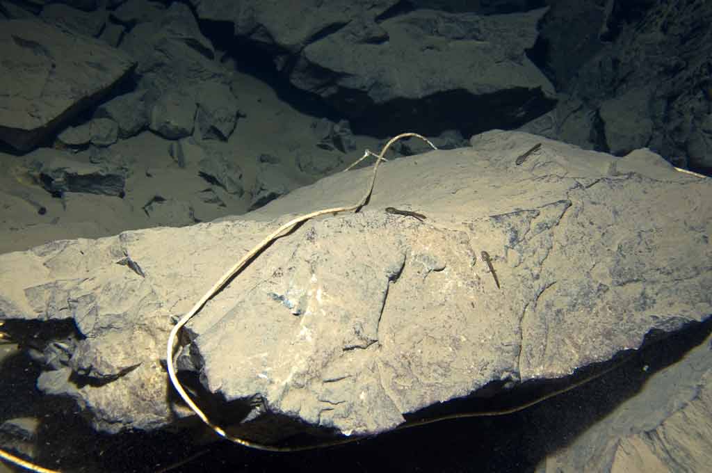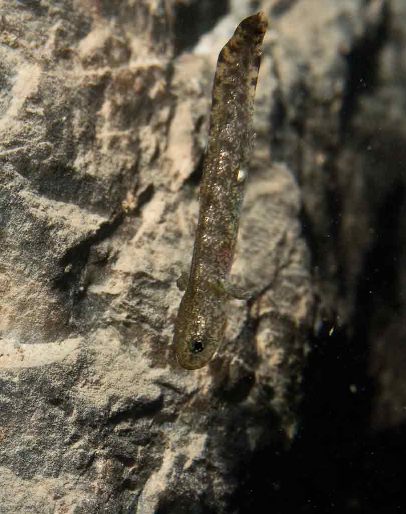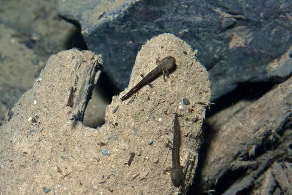 Bei einem Höhlentauchgang im französischen Department LOT, in dem es viele unter Wasser stehende Kalksteinhöhlen gibt, konnten wir eine Entdeckung dokumentieren. In der "Truffe", einer viel von Spezialisten betauchten flachen Höhle entdeckte mein Tauchbegleiter auf dem Rückweg ca. 50m vor dem Ausgang einen völlig umgewandelten Feuersalamander. Ich hatte keine ideale Ausrüstung für die Doku dabei, aber ich denke, man erkennt die wichtigsten Dinge. Wie er dorthin gekommen ist, bleibt unklar. Er schwamm jedenfalls und bewegte sich völlig normal. Möglich ist, dass er sich im Pool (der aber auch von Fischen bevölkert wird), metamorphosiert ist und mit Tauchern in die Höhle verdriftet wurde. Der Eingang ist für Menschen zwar ziemlich eng, aber nicht für Feuersalamander. Vorher hatten wir schon Rotfedern und später noch eine große Ochsenfroschlarve in der Höhle gefunden.