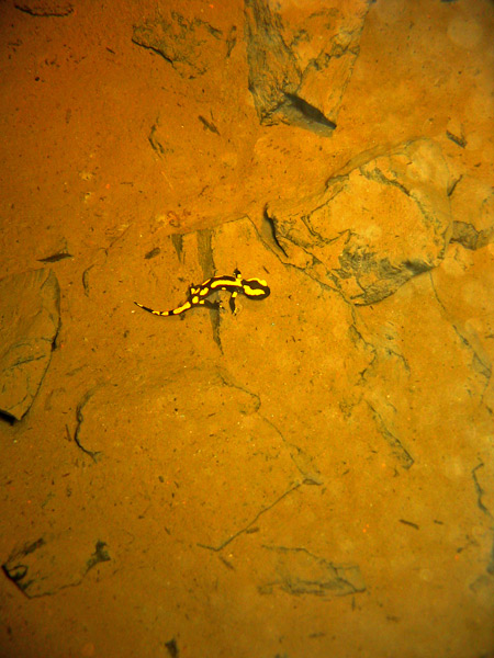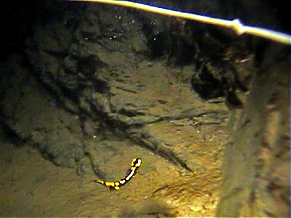 ...Bringt man Feuersalamander und deren Larven sonst eher mit flachen, langsamfließenden Laubwaldbächen in Verbindung, und nicht mit steinigen Unterwasserhöhlen mit 22m Tiefe...