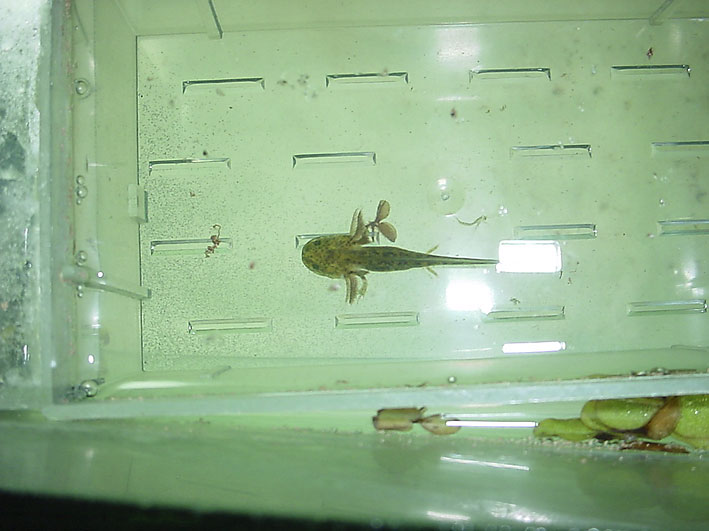 Mit dem "richtigen" Becken würde ich aber noch warten, bis die Hinterbeine da sind, und dann auch Bodengrund dazunehmen.
