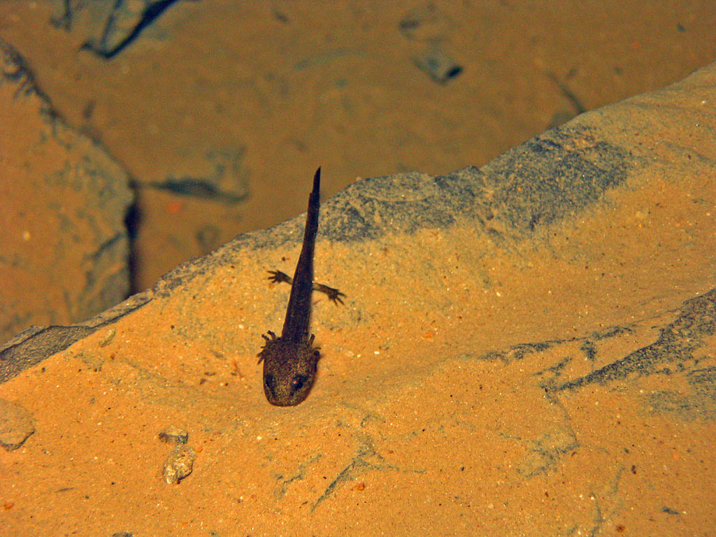 Zu 5. wie das umgewandelte Tier den (wassergefüllten!) Stollen verlassen konnte, bezieht sich ausschließlich auf die Atmung, wobei ich davon ausgegangen bin, daß durch die Kiemenreduktion und die einsetzende Lungenfunktion im Wasser kein längeres Überleben möglich sein dürfte. Evtl. gibt es da aber ein Übergangsstadium und vielleicht wird auch über die Haut geatmet. Es gibt ja andere Salamander, die das ausschließlich so machen.