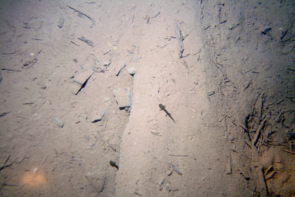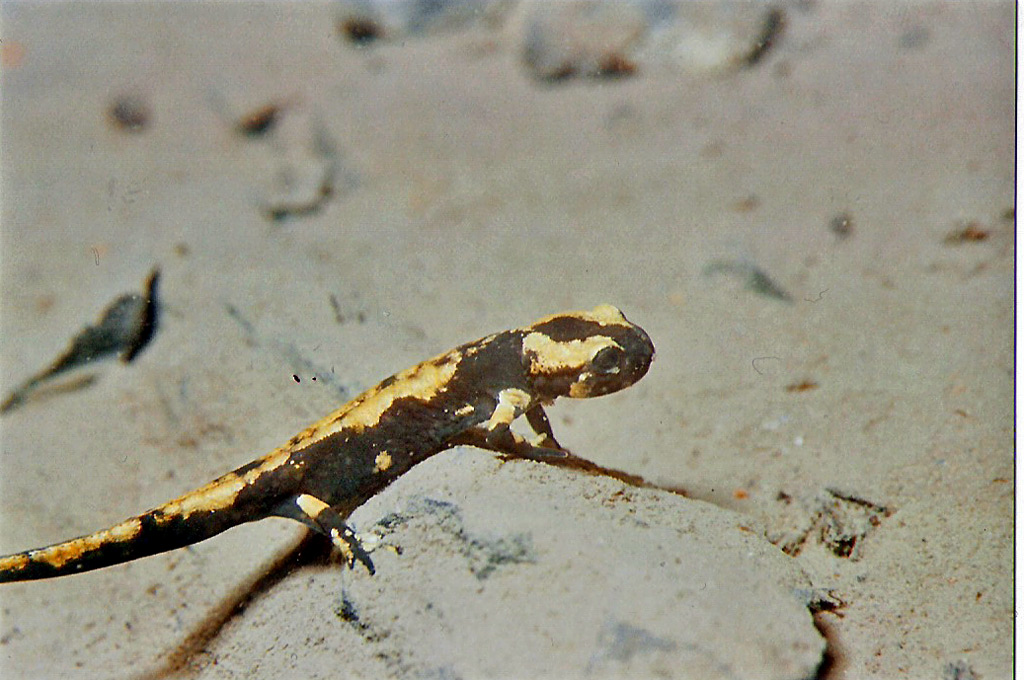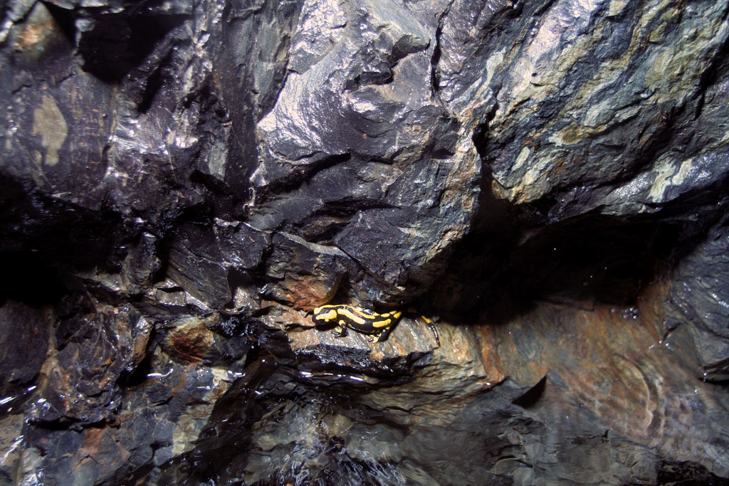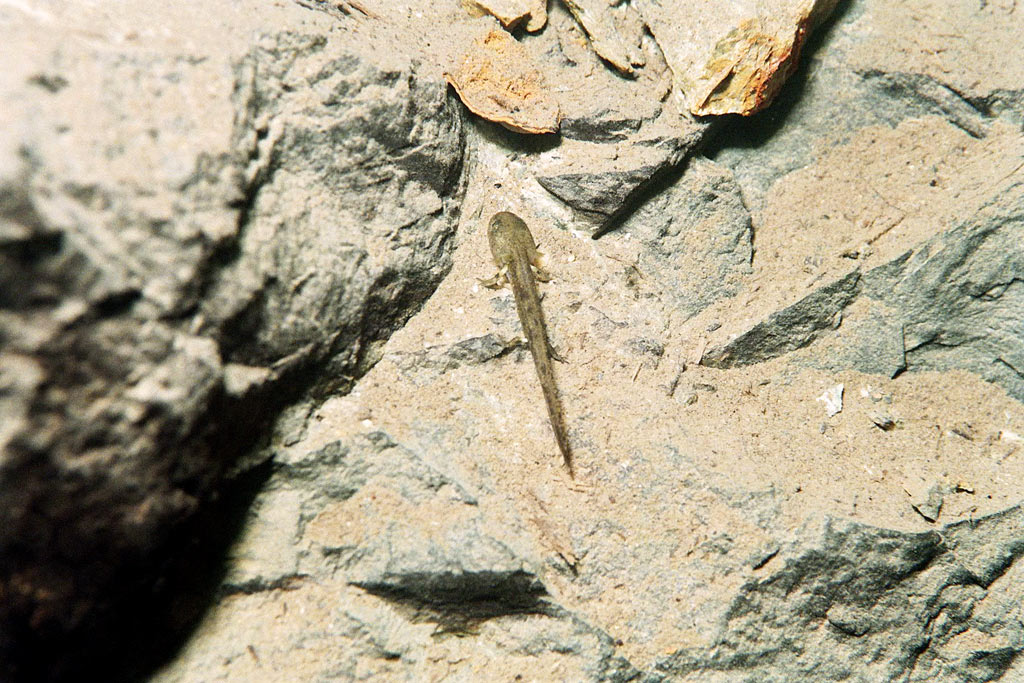 Dann gibt es noch diverse Unterwasserfotos und zwei Fotos von Jungsalamandern über Wasser am Eingangsbereich des Stollens