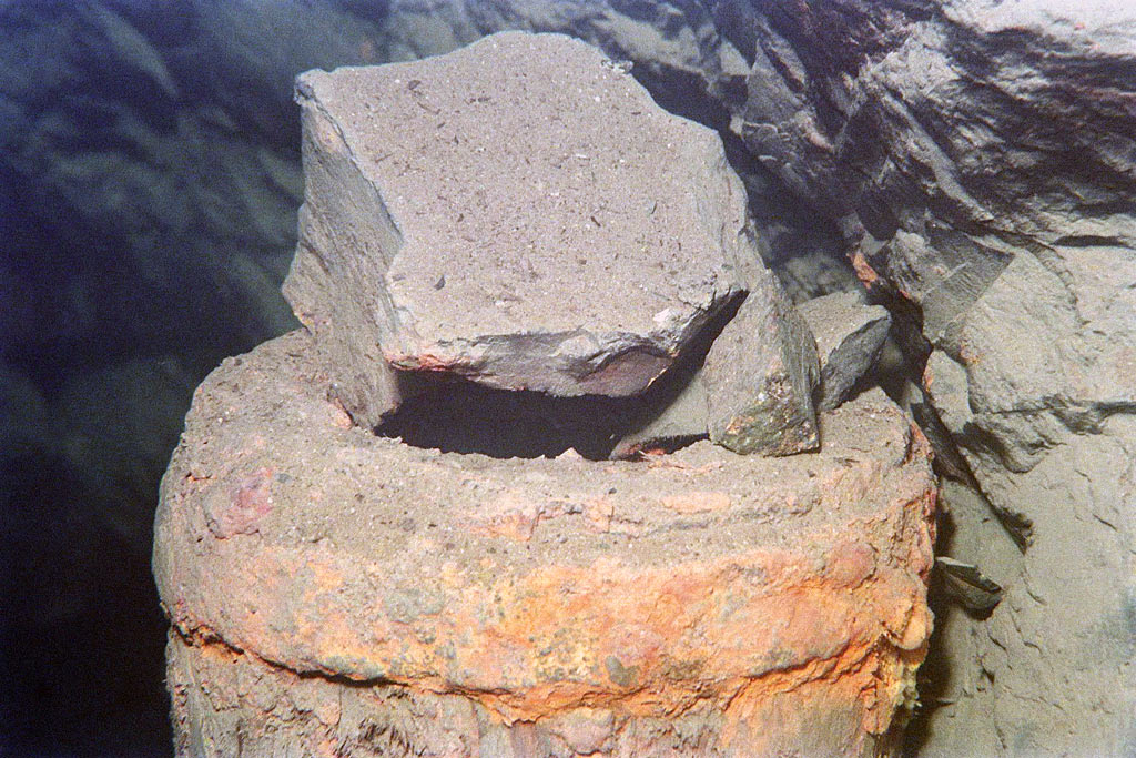 Die größte Überraschung erwartete den Taucher aber am Ende des Abstiegs im Gesenk auf 22m. Hier saß ein lebendes! ausgewachsenes Tier. (Ich wollte das deshalb erwähnen, weil ich vor fast einem Jahr an dieser Stelle ein frisch ertrunkenes Adultus gefunden habe.)