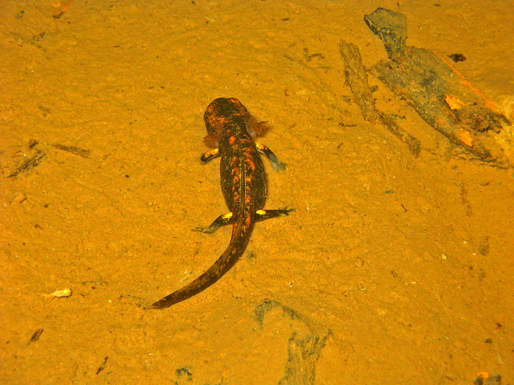 Zu 5. wie das umgewandelte Tier den (wassergefüllten!) Stollen verlassen konnte, bezieht sich ausschließlich auf die Atmung, wobei ich davon ausgegangen bin, daß durch die Kiemenreduktion und die einsetzende Lungenfunktion im Wasser kein längeres Überleben möglich sein dürfte. Evtl. gibt es da aber ein Übergangsstadium und vielleicht wird auch über die Haut geatmet. Es gibt ja andere Salamander, die das ausschließlich so machen.