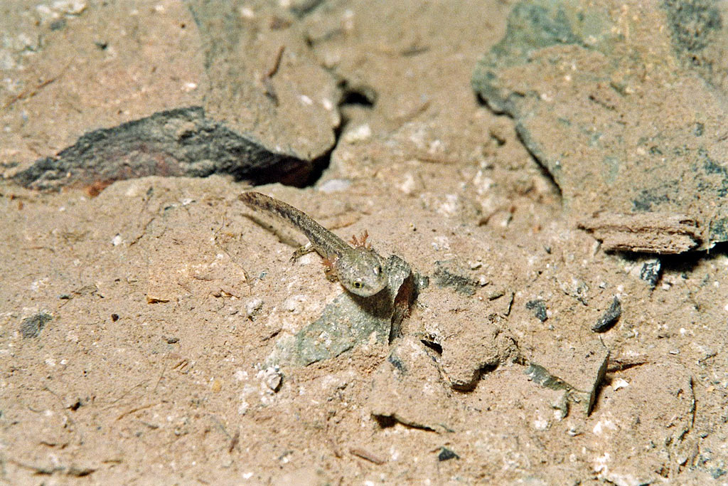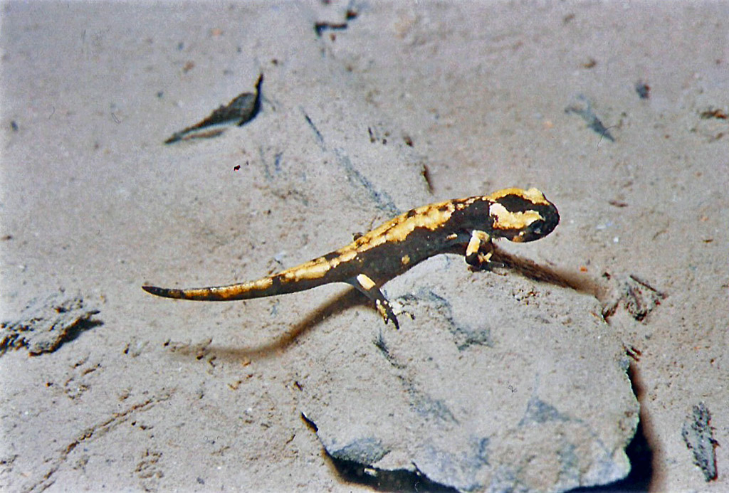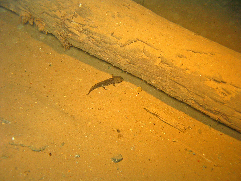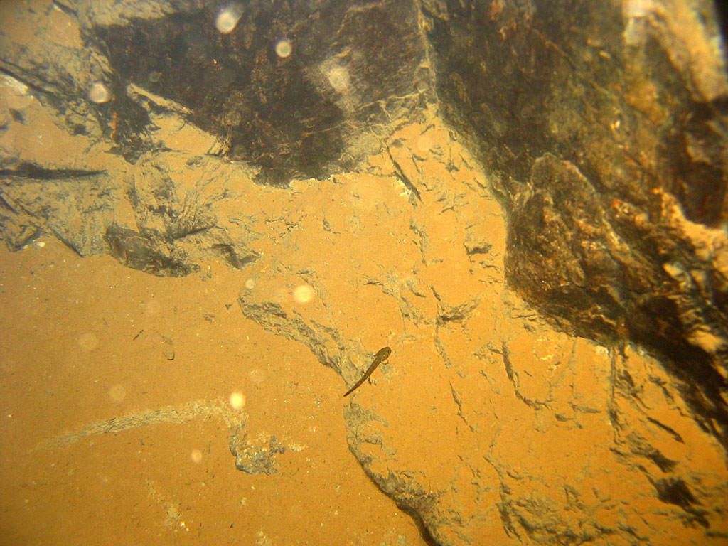 Dann gibt es noch diverse Unterwasserfotos und zwei Fotos von Jungsalamandern über Wasser am Eingangsbereich des Stollens