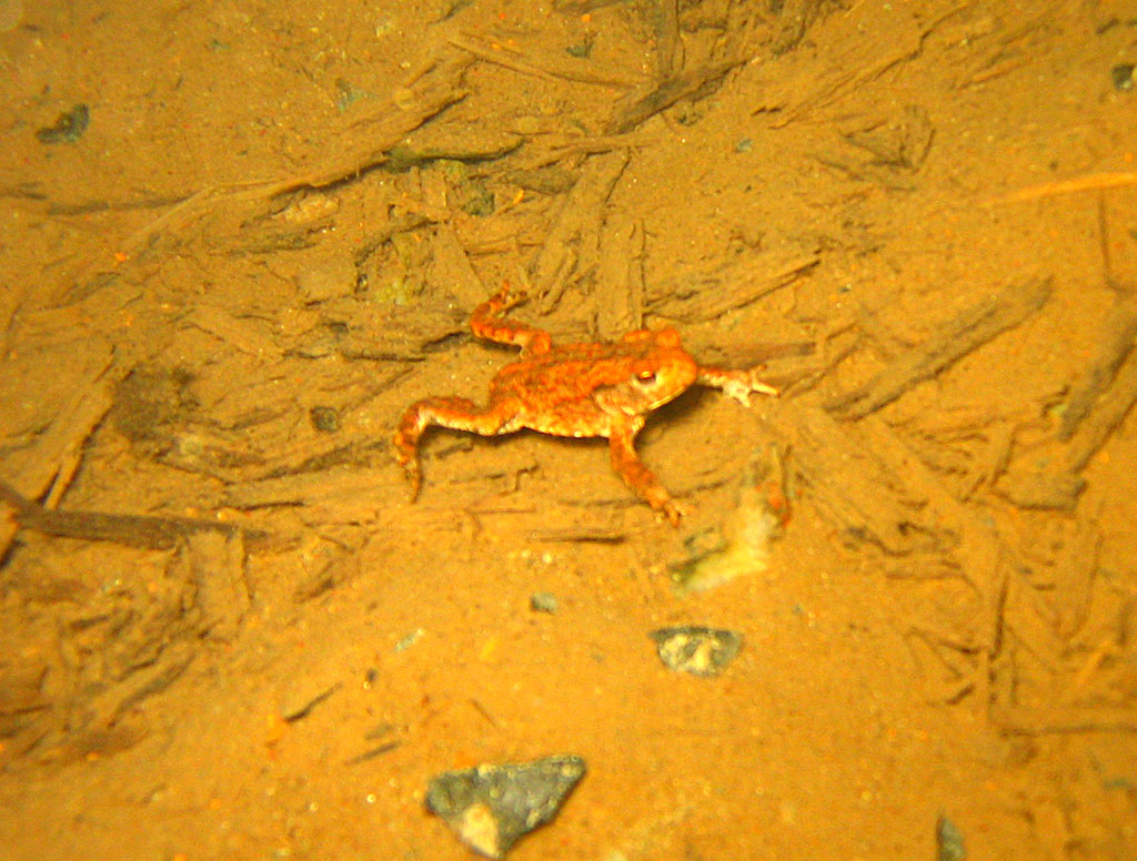 Kommen wir zu den erfreulichen Fakten: 43 gezählte Larven, darunter der immer noch auf Platz 1 agierende Hauptdarsteller. Der liebt sein Plätzchen an der Ortsbrust so sehr, dass er wieder zurückgelaufen ist. Back again ist ebenso die Erdkröte!