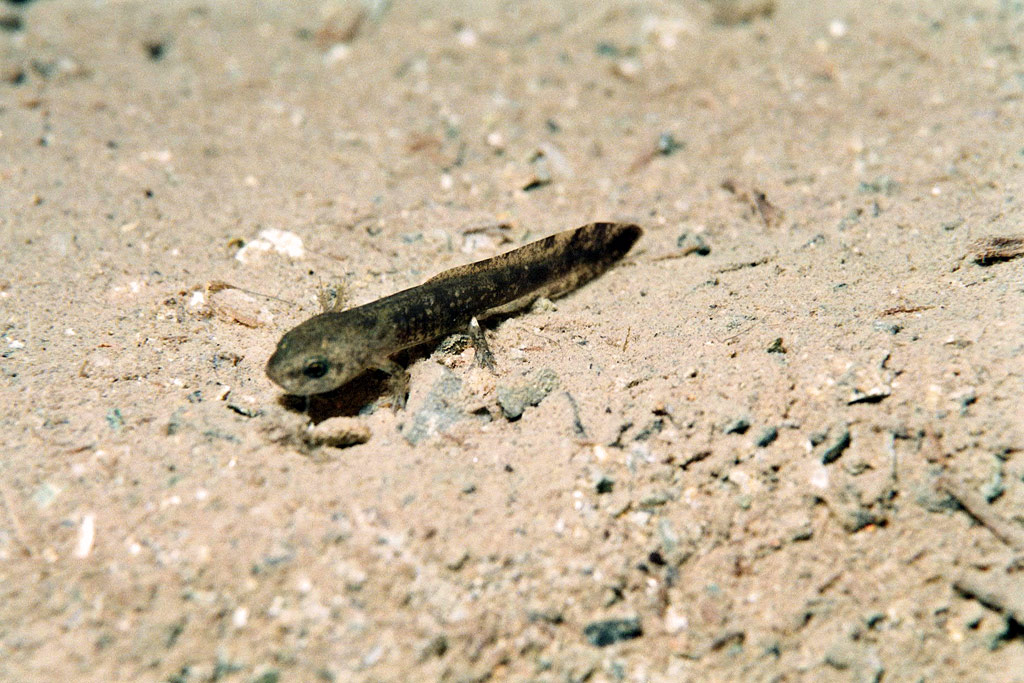 Eine verendete Larve wurde neben mehreren sehr kleinen (möglicherweise frisch geborenen) gesichtet.