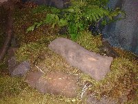 . Ich habe den Landteil mit Styropo gemacht, und zwar auf einer seite ca. 40 cm auf der anderen 10, und zwischen denen fließt ein 10 cm breiter Bach. Er ist ca. 2 cm Tief, mit Kletterhilfen zum rauskommen, und großen Kieseln. Ansonsten habe ich Walderde genommen, und viel viel Moos!