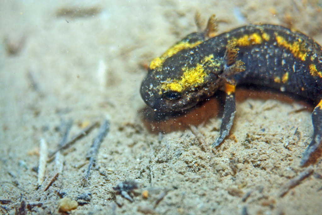Dass es ein Weibchen ist, was während des Absetztens der Jungen oder kurz danach gestorben sein soll, das scheint mir eine sehr wackelige Behauptung. Dieser Theorie würde ich nicht folgen wollen, weil das Grubengewässer in 22m Wassertiefe für "Mütter" kein Ort ist, in das man Junge absetzt, die ihre Zukunft vor sich haben sollen, zumal ganz in der Nähe optimale Laichgewässer vorhanden sind.