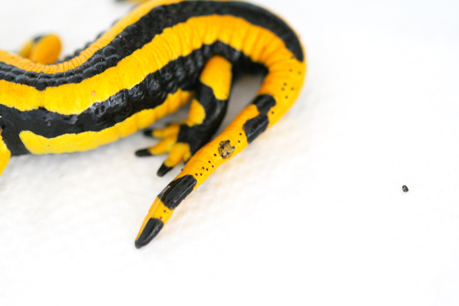 Das Verhalten des Salamanders ist weiterhin normal (selbst nach der kleinen Fotosession gerade mit Blitz hat er noch eine Belohnungsraupe von der Pinzette genommen und sich nicht versteckt - apathisch ist er aber auch nicht).