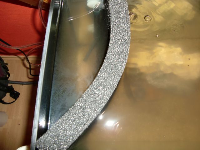 Evtl. täuscht mich mein Auge ... es sieht so aus, als sei der Wasserauslauf des Lufthebers unterhalb der Wasseroberfläche. Das halte ich für kontraproduktiv in Bezug auf Lärm und Oberflächenbewegung. Bei mir sitzen die Auslassrohre so, dass sie etwa auf der Wasseroberfläche münden.