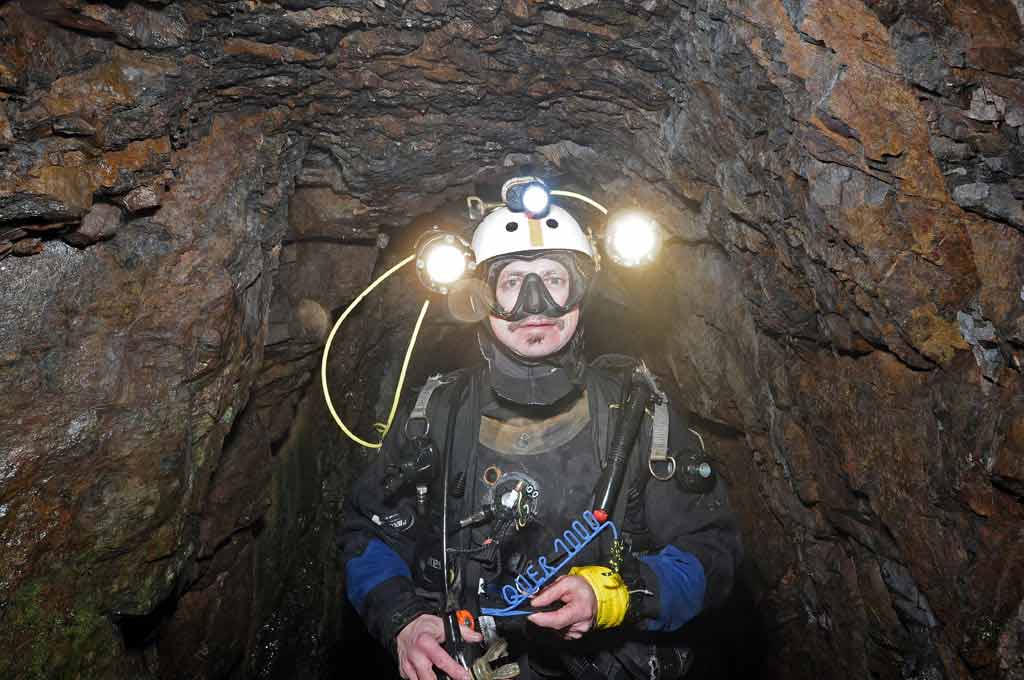 In Erinnerung an alte Zeiten und weil man Videos im Altbergbau viel einfacher mit der leichten Naßtauchausrüstung drehen kann, hatte ich mich voller Optimismus für einen 3mm Anzug mit Eisweste entschieden.