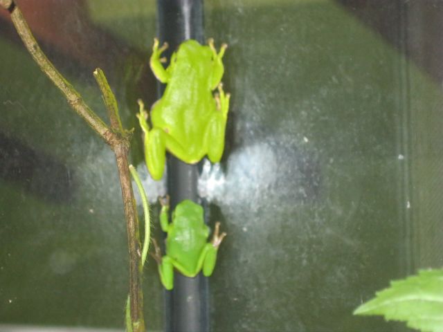 - Geburtstag war heute bei den Gelbbauchunken, die ersten Larven sind aus dem Ei und hängen an den Scheiben.