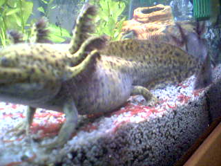 Ich denke, du meinst Umkehrosmosewasser? Wenn du wirklich alle 10 Tage 60 l unverschnittenes UO-Wasser ins Becken haust, dürfte dein GH-Wert absolut im Keller sein, was pures Gift für die Haut von Axolotls ist. Miss mal die Härtewerte; falls die GH unter 5°dH liegt, handelt es sich bei dem weißlichen Zeug wahrscheinlich nicht um einen Belag, sondern um eine Eintrübung der (wahrscheinlich nicht mehr voll intakten)äußeren Schleimschicht der Haut. Normalerweise sollte die GH für Axls nicht unter 10°dH fallen; auch das eingewechselte Wasser sollte immer einen Grundwert von 10° oder mehr (auch 30° sind kein Problem) aufweisen, daher ist Umkehrosmose bei Axls allenfalls dann angebracht, wenn man gezielt mit speziellen Mineralien aufhärten und das nicht noch zusätzlich auf den ionischen Calciumanteil aufstocken will. Im Zweifelsfall sollte man die UO einfach weglassen.