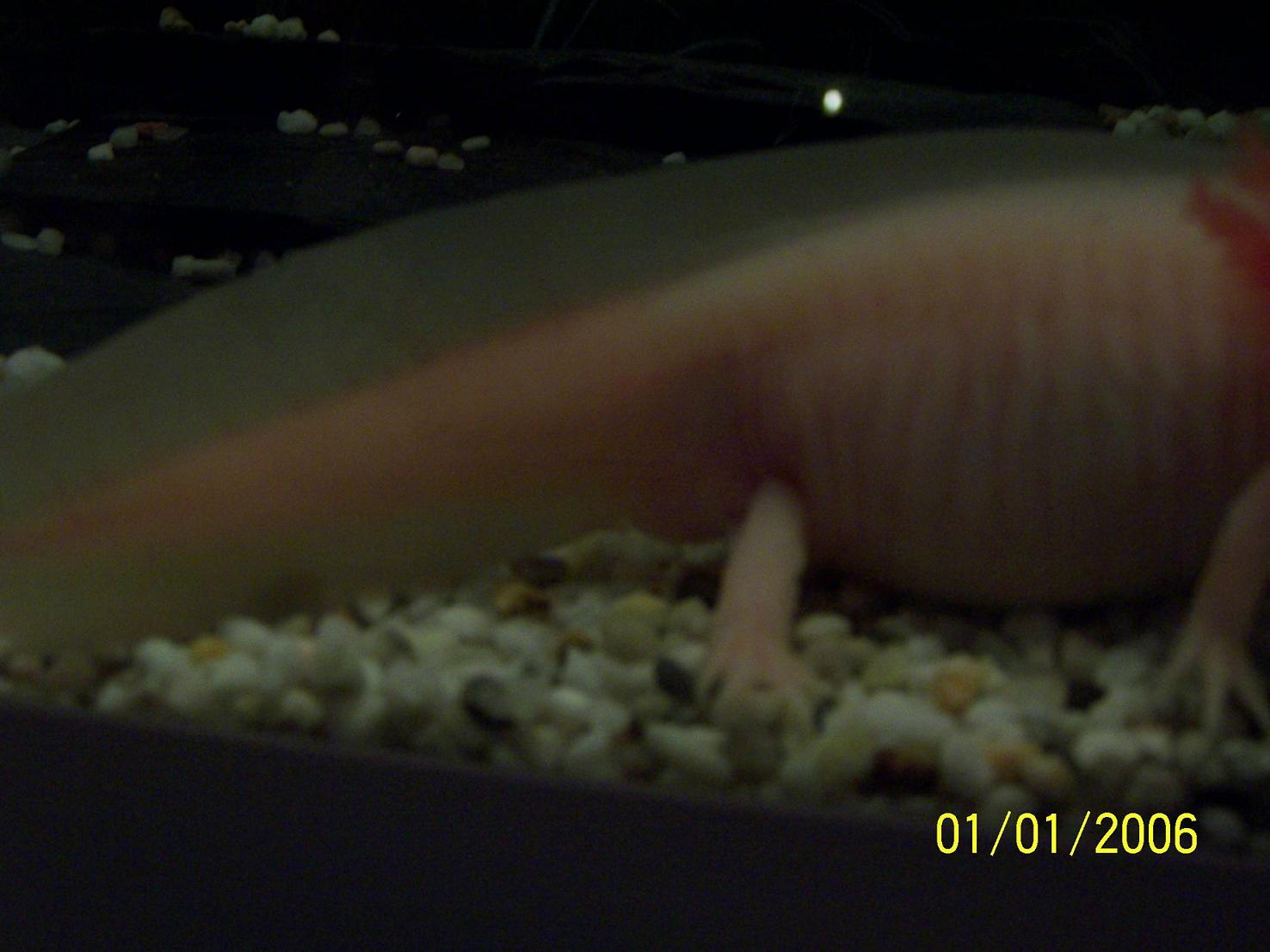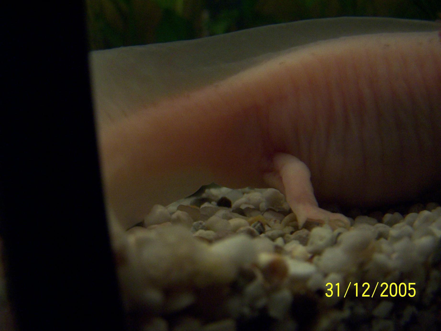 Wie alt ist denn Dein Axolotl? Was mir auch aufgefallen ist, daß Dein Axolotl ziemlich moppelig ist! Ich würde das Futter etwas reduzieren.