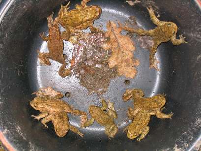 Habe hunderte,hunderte Bufo bufos geshen. Ca. ein Dutzend Grasfrösche, 1 Bergmolchweibchen und ein Teichmolchmännchen..... Heute Abend mache ich mich wieder auf die "Jagd" .... natürlich nur mit der Digital-Kamera ;)