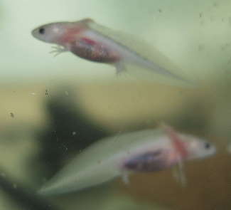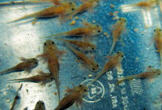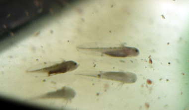 Die größten sind nach 4 Wochen schon bei 2cm angelangt, kein Wunder Fressen ohne Ende, Teichfutter gibt es zur Zeit reichlich.