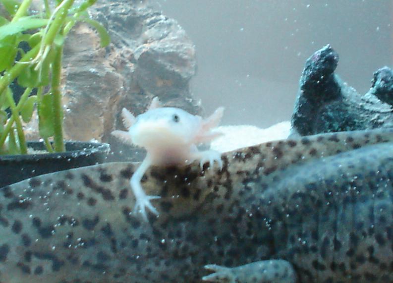 ich habe meine 2, welche die gleiche Größe wie deiner hatten, in einem gleichgroßen Becken aufgezogen. Das ist kein Problem. Lass ihn darin bis er ca. 18cm groß is, dann kann er auch zu ziehmlich großen Axos.