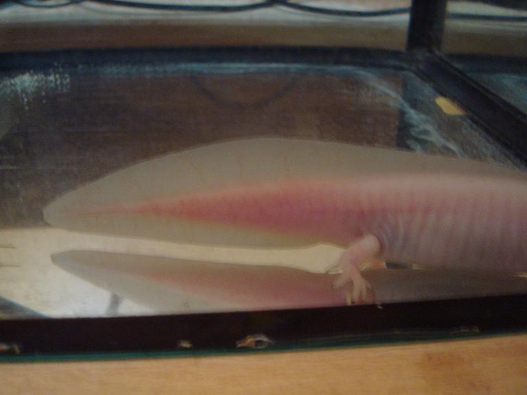 ich halte vier Axolotl-Weibchen in einem 300L-Becken, 140cm x 60cm x 35cm. Es gibt zwei Höhlen zum Verstecken, einen "Wald" aus Hornkraut, der Bodengrund ist feiner Sand. Dazu gibt es einige glattgeschliffene Steine, die ich im Aquarium verteilt habe. Die Tiere sind von Maul bis Schwangspitze 17-18cm lang.
