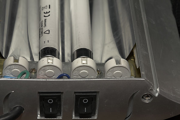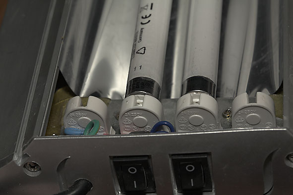 in welche Zoogeschäfte kommst Du denn so? Ich habe zwei Billig-Aufsetzleuchten [100cm und 150cm] von Hopar erworben, die jeweils 4 HE-Röhren fassen.