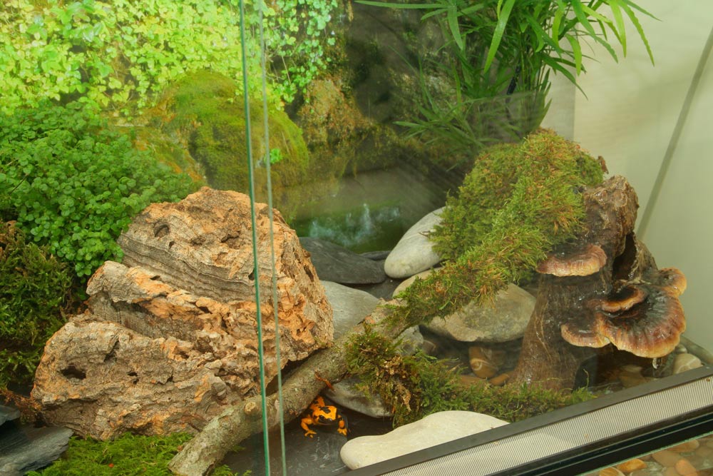 Die Einrichtung seht ihr dann auf Bild 3 und 4. Ich habe auch einen kleinen Wasserlauf im Wasserbecken integriert, der hilft, die Luftfeuchtigkeit zu halten (und zudem für Menschenaugen schön anzusehen ist
