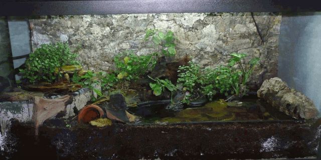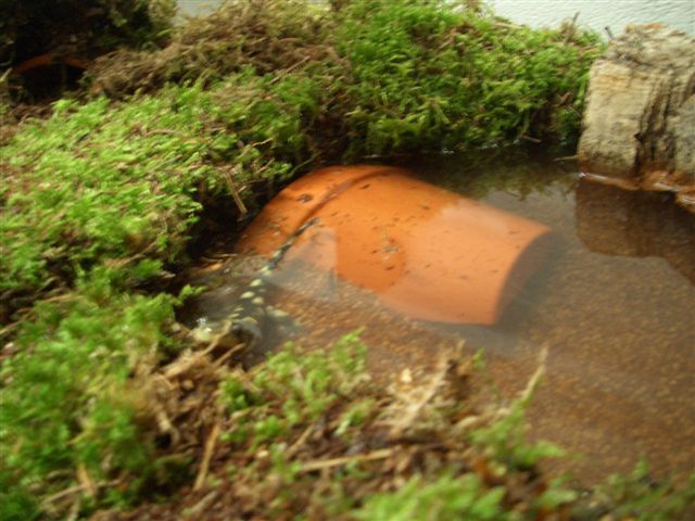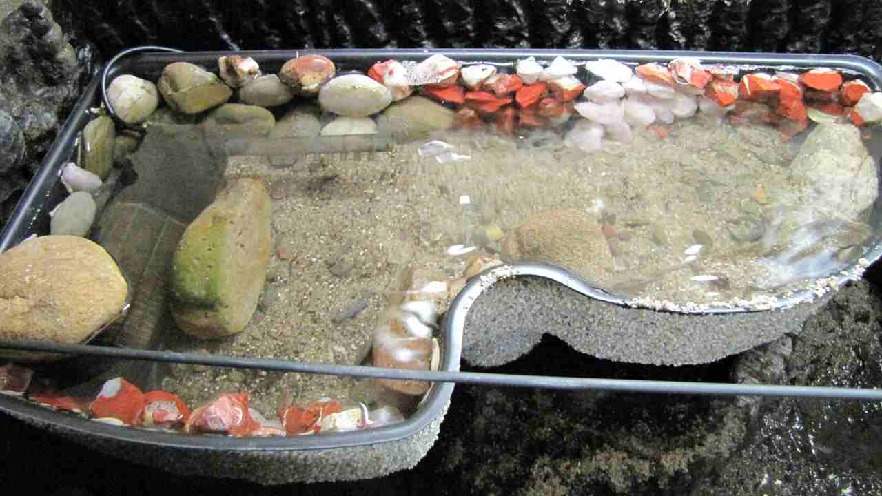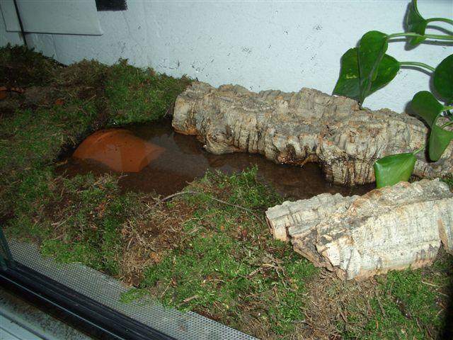 . Ich habe mal 3 Bilder angehängt, die einen hochgesetzten Terrarienpool zeigen. Das ist das gleiche Teil für den Pool, aber es steht auf 4 Füßen, die wir ebenfalls anbieten. Von außen sind die Teile mit weissem, feinen Kies beschichtet worden und innen habe ich richtige Steine am Rand entlang eingeklebt. Eingeklebt deswegen, weil sie dann platzsparender die Seitenwand verdecken, als wenn ich nur Steine aufschichte. Außerdem ist damit sichergestellt das keiner der Bewohner durch einen runterrutschenden Stein verletzt wird.