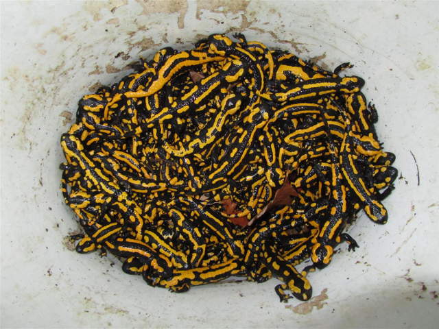Außerdem hat RANA e.V. aktuell und spontan eine Umsiedelungsaktion vom Feuersalamander organisiert und es konnten dadurch bis jetzt, bereits nahezu 600 Feuersalamander gerettet werden.