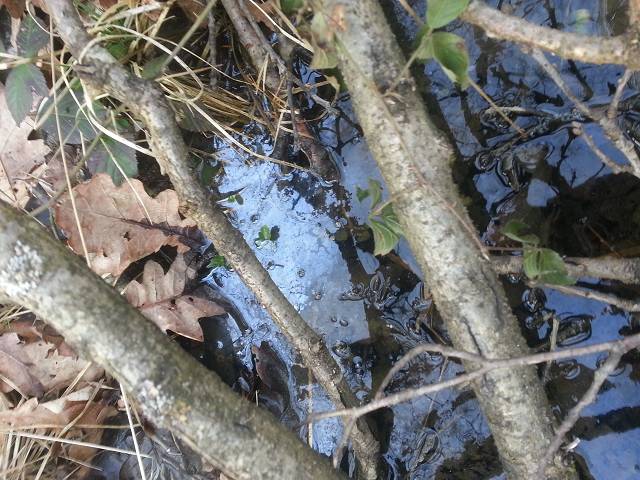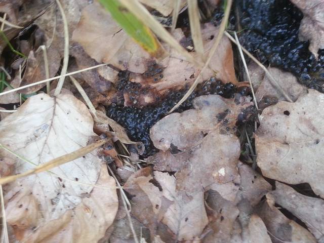 weiterere Bilder, der Laich und die Ölspur quais direkt daneben. In einer dieser Pfütze befand sich auch noch ein Laichballen: