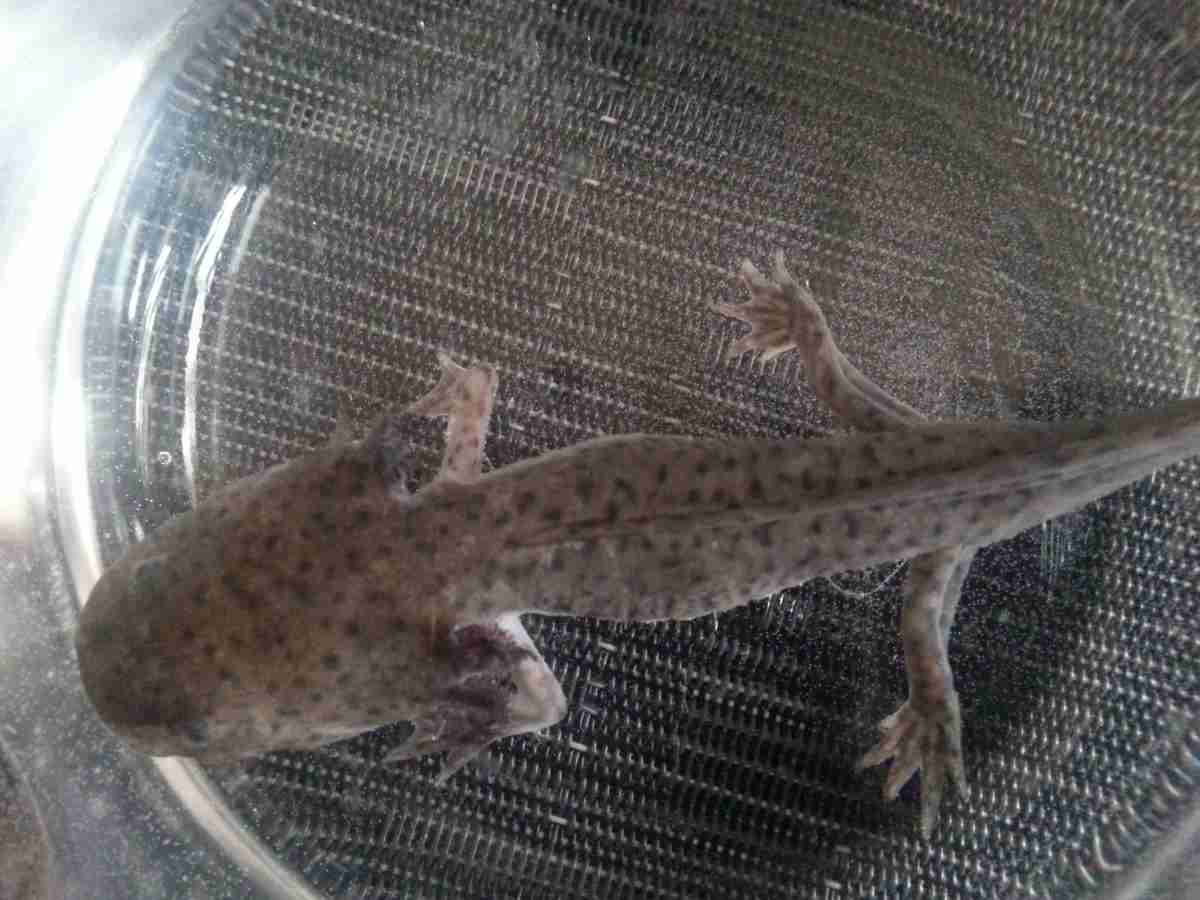 Letztes Jahr im August war ich übers Wochenende mal nicht zu Hause, als ich dann zurück kam, war ein Bein gebrochen, ein Vorderbein war zur Hälfte weg und er war sehr sehr dünn! Wir haben ihn dann per Handfütterung wieder aufgepeppelt, Bein wuchs wieder gut nach (bis auf eine Zehe) und auch das gebrochene Bein ist wieder völlig in Ordnung. Danach gabs auch einen mehr oder minder starken Wachstumsschub von 3 cm sodass wir jetzt auf etwa 11 cm stehen. In der Zeit sahen auch seine Kiemen wirklich schön aus.