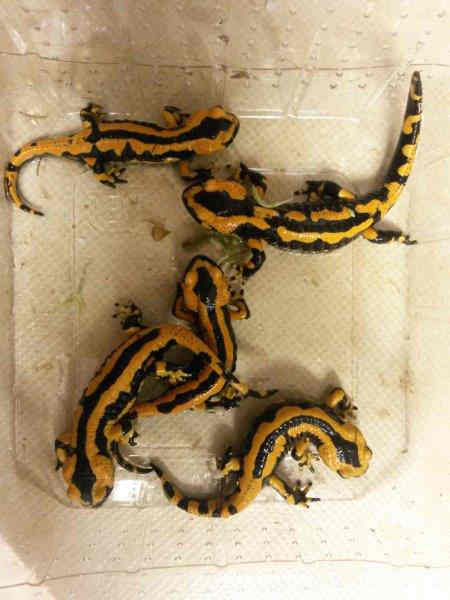 Es sind Jungtiere von hypomelanistischem Vater x hochgelber Mutter bzw. hypomelanistischem Vater x roter Mutter.