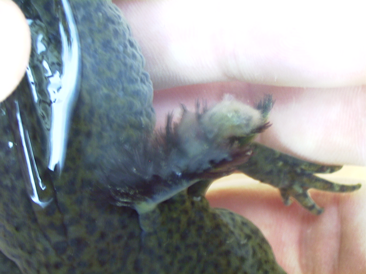 Volker: An dem Bein, das sind nur gaaanz dünne Fädchen. Ich glaub nicht, dass ich das aufs Bild bekomme. Ich glaube schon, dass auch da der Pilz dran ist.