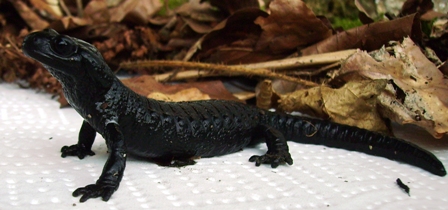 Kein schöner Anblick, aber wo tote Tiere sind müssen auch lebende sein. Nachdem der Tag nichts gebracht hatte machte ich mich Nachts bei leichten Nieselregen auf den Weg und es sollte sich lohnen. Auf ca. der hälfte des Weges lief ein fast Mausgoßes schwarzes etwas in den Wald. Ein Alpensalamander!!!