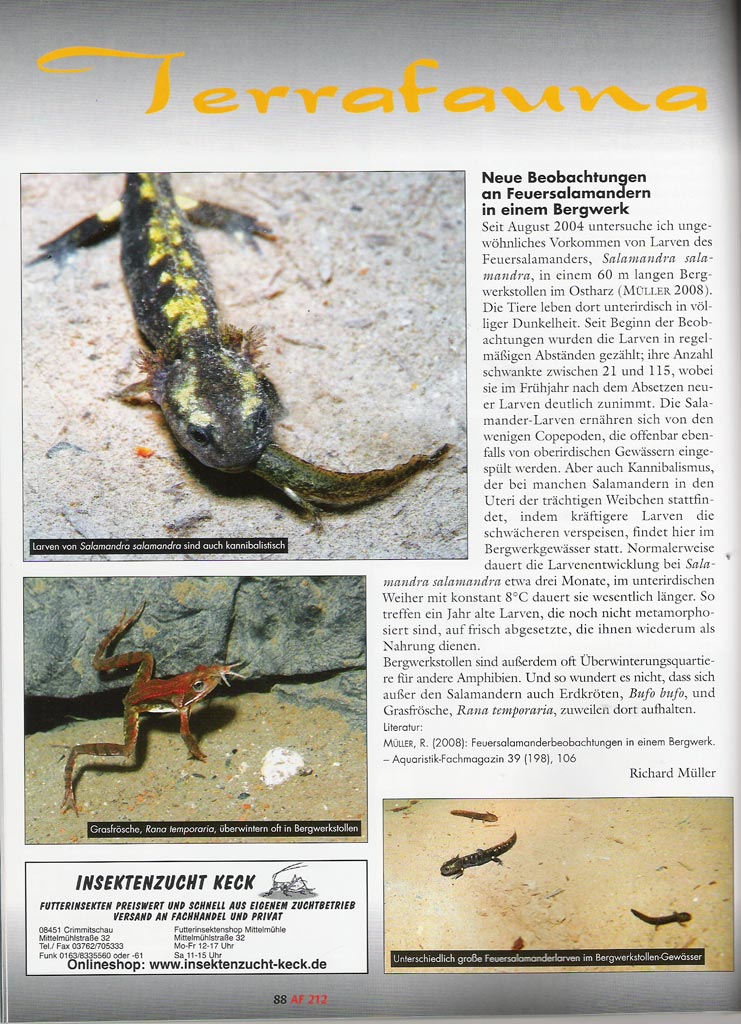 Feuersalamanderlarven Beobachtungen in einem Bergwerk (Altbergbau von ca. 1740) auf 22m Wassertiefe seit August 2005 im Ostharz