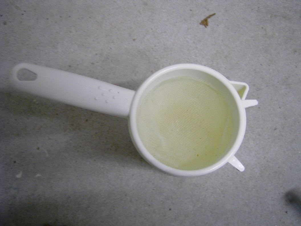 1. Mückenlarvenwürfel für ca 15 min in einem Küchensieb aus Plastik auftauen lassen.
