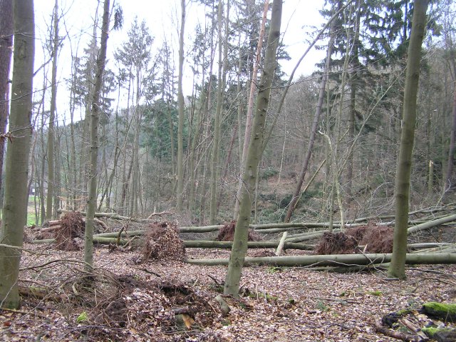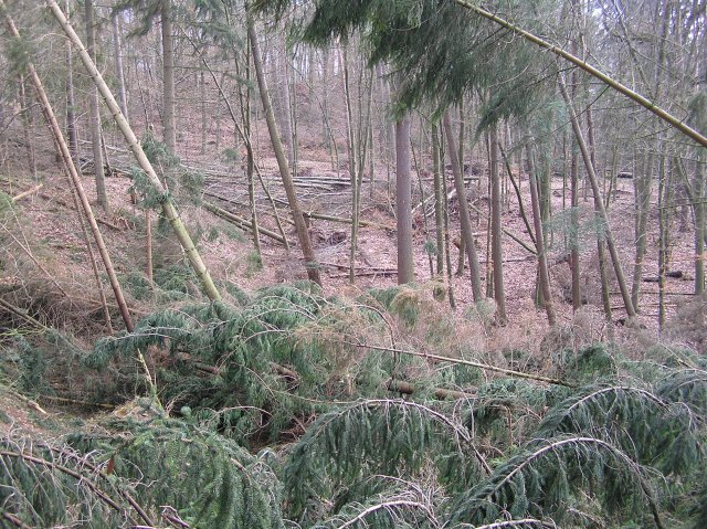 Außerdem habe ich mal dokumentiert, was der Sturm mit dem Wald angerichtet hat - teilweise liegen mehr Bäume um, als noch stehen 8o