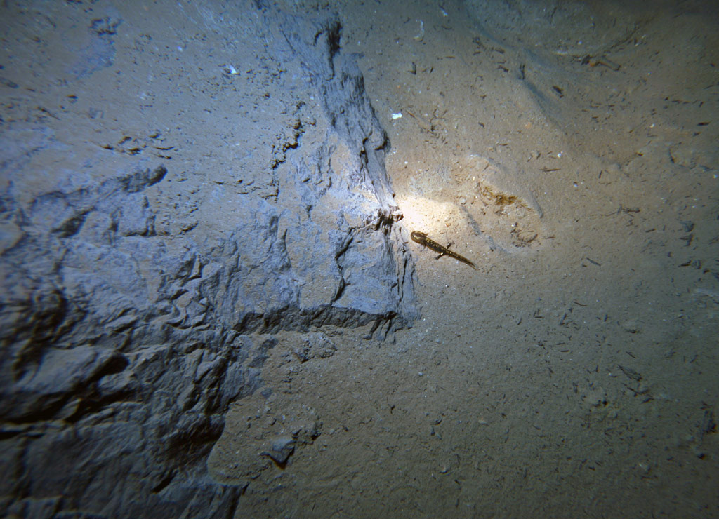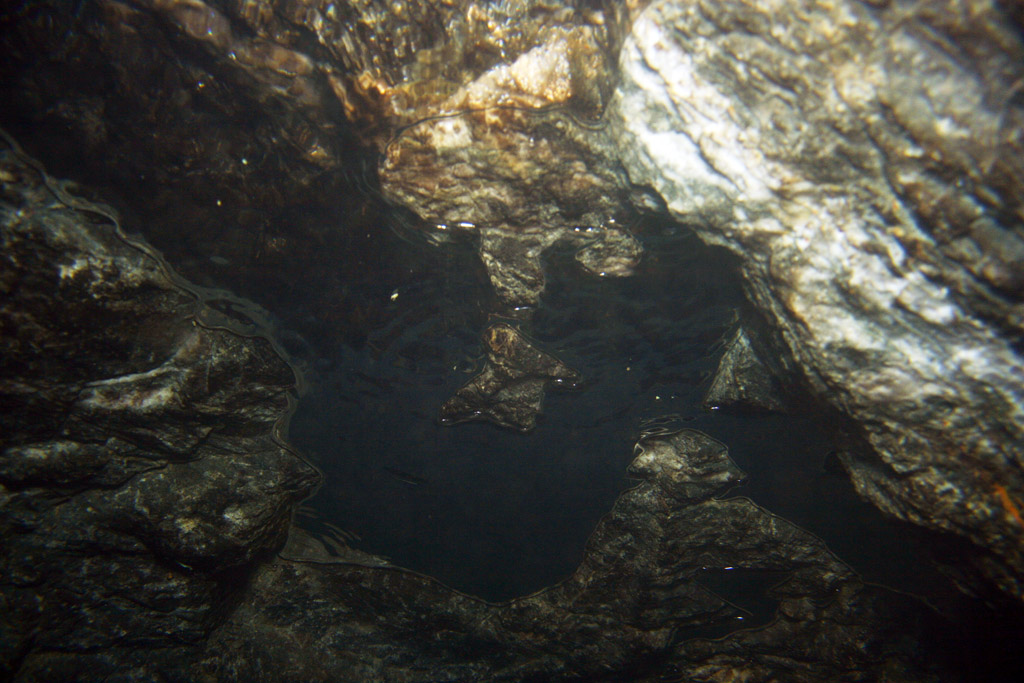 Weiter oben waren keine Larven zu finden, außer im Flachbereich am Mundloch.