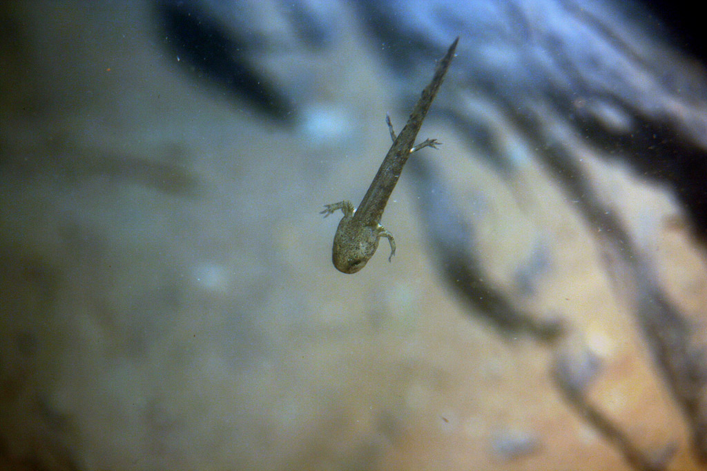 Über Wasser waren 3 sehr kleine umgefärbte Salamander unterwegs und ein größerer.