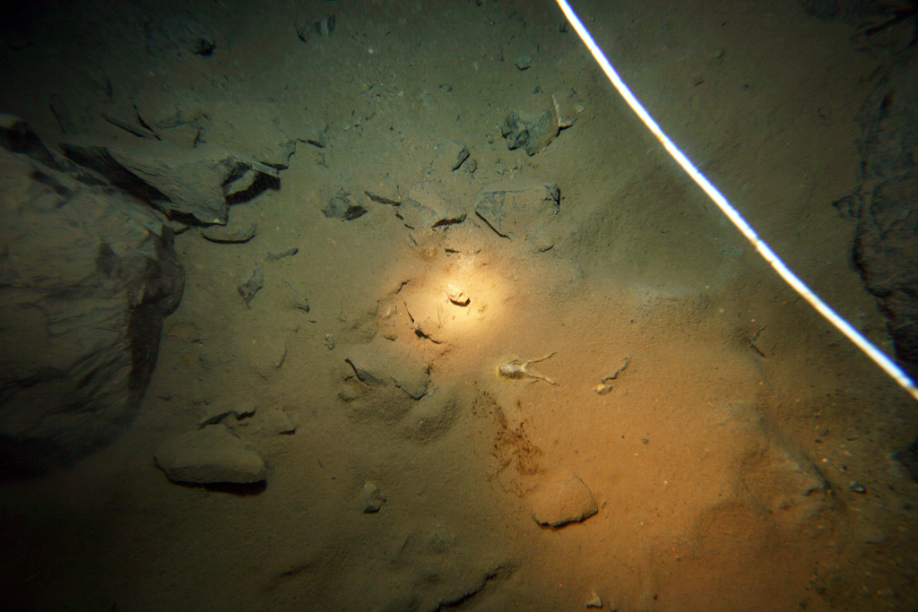 Da bereits mehrfach zur Laichzeit große Tiere hier unten auf 22m waren, kann wohl davon ausgegangen werden, dass direkt auch unten Larven abgesetzt werden.