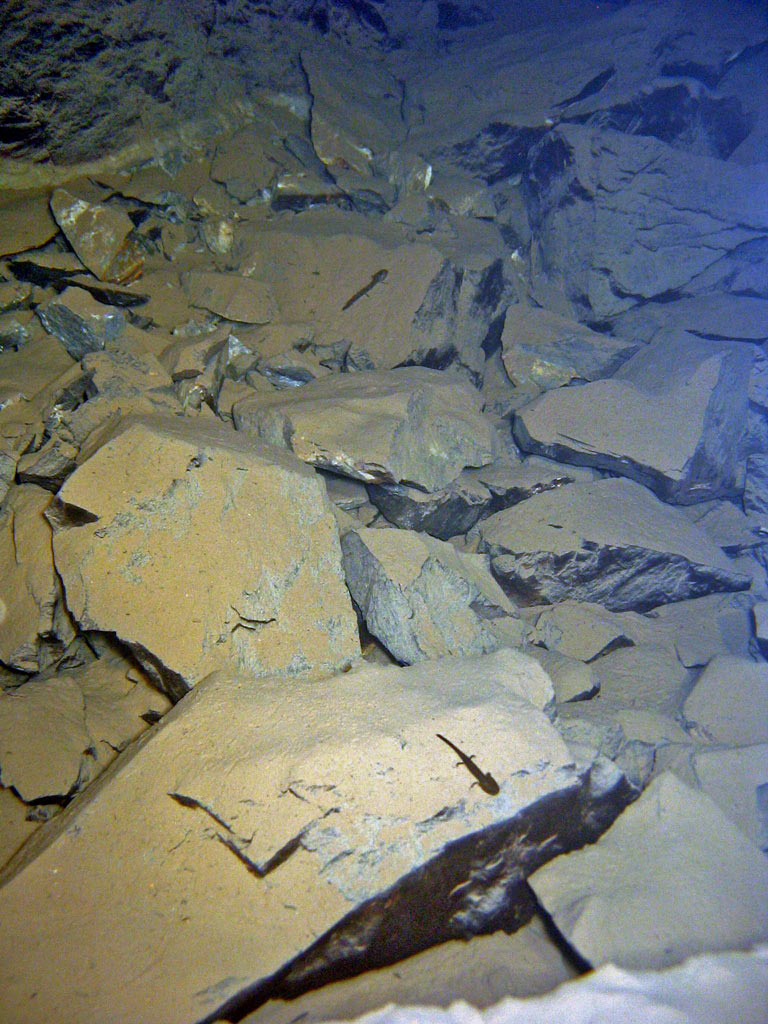 was die Hautreste angeht, ist das offenbar eine noch nicht vollständig erfolgte Häutung. Über den Gesamtzustand des Tiers mache ich mir allerdings auch Sorgen, das sieht nicht so aus, als würde es die nächste Zeit überleben. Die Frage für mich ist: Bestand früher vielleicht ein Ein-/ Ausgang für die Tiere, der jetzt verschlossen ist? Könnte eine Erklärung sein, denn ansonsten würden die metamorphosierten Tiere doch die Höhle zur Futtersuche verlassen...
