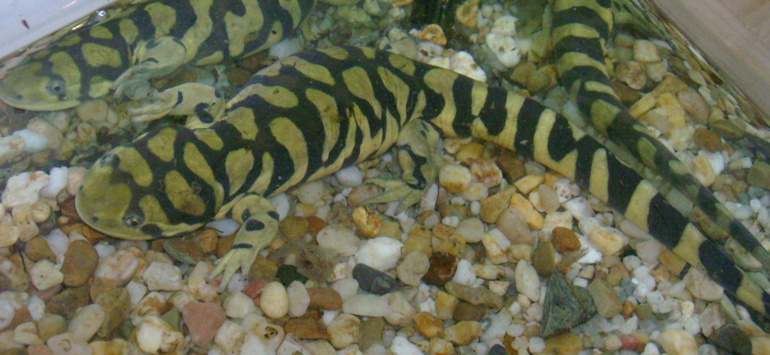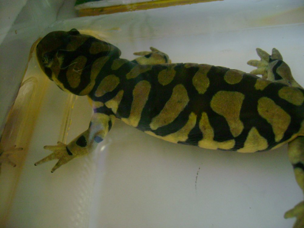 Also ich habe ja nun seit 2 1/2 Jahren meine Ambystoma mavortium. Bei meiner großen Dame war ich mir da jedoch nie so wirklich einhundertprozentig sicher, ob es sich bei ihr wirklich um eine Tier dieser Tigersalamanderunterart handelt. So nach und nach verdichten sich meine Zweifel und da sie scheinbar auch einen völlig anderen Paarungszeitraum bevorzugt (quasi jetzt) als die anderen (eher im Frühjahr), wachsen meine Zweifel umso mehr. Das hab ich bisher immer mit dem Argument abgetan, dass das Verbreitungsgebiet von Ambystoma mavortium ja doch sehr groß ist. Langsam bin ich mir aber wie gesagt dennoch verunsichert.