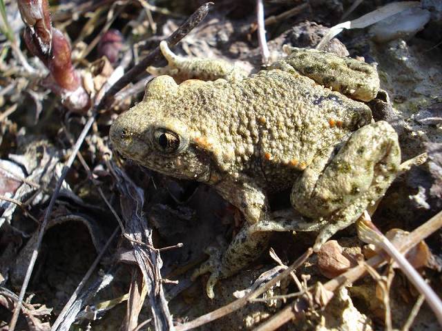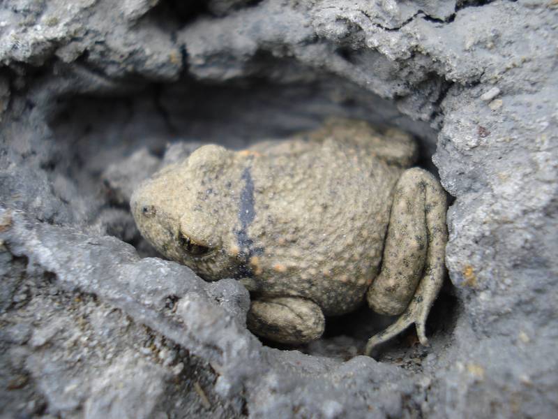 Und schlußendlich noch das Bild der dreibeinigen Wechselkröte: Dieses Tier - auch mit Flecken - finde ich seit ein paar Jahren auch regelmäßig im Frühjahr bzw. Sommer; es ist also auch vital.