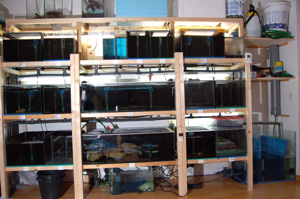 Jetzt auch ein Bild, wo erstens die Anlage nun bis auf ein Becken vollendet, der Rieselfilter und die Regalbretter eingebaut sind UND es sollte doch recht aufgeräumt sein! :)