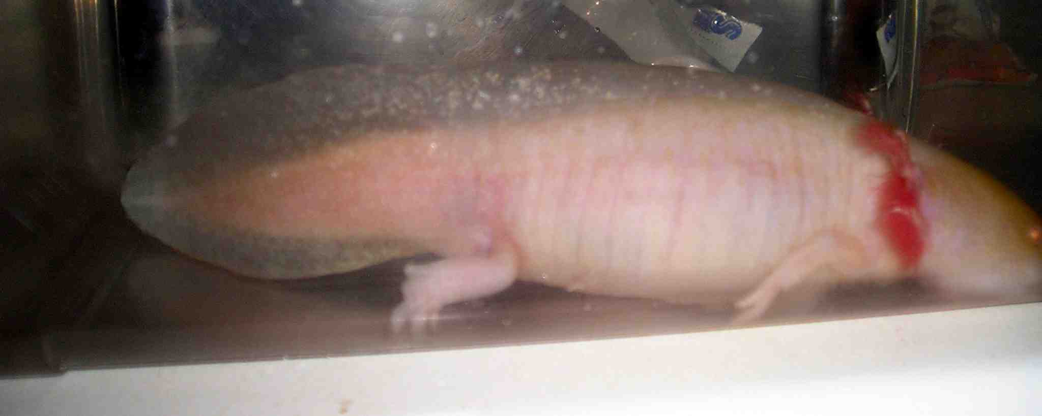 Eines meiner 3 albino-Weibchen hat jetzt seit gute 2 1/2 Wochen nicht mehr gefressen, obwohl sie bis jetzt nie Probleme hatte. Es hat wie ich denke mit einem Pilz an einem der Kiemenäste angefangen. Als ich den gesehen hab, kam sie in ein Intensivsalzbad. Am nächsten Tag war der Pilz wirklich weg (er hat sich nicht mit dem Finger wegmachen lassen) An der Stelle wo der Pilz war sind die Fäden am Kiemenast ausgefallen, die andern sind aber noch da. Aber dafür hat sie den Dendrobena nicht mehr runter gekriegt. Sie hat ihn ständig angebissen, aber sofort wieder ausgespuckt. Dann wieder und wieder. Also sie wollte ihn fressen, konnte es aber nicht?! Ein paar Tage später habe ich es noch mal probiert und es war wieder das selbe: anknabbern, ausspucken, anknabbern, ausspucken. Dann habe ich ein Lachsfiletstückchen 1cmx1cm genommen. Das hat sie tatsächlich nach einigen Anläufen zumindest im Maul behalten können und später auch schlucken können. Gestern habe ich es wieder mit einem kleineren Wurm probiert, das ging wieder nicht und es scheint noch schlimmer geworden zu sein, sie hat versucht zu schnappen aber hat das Maul nicht mal 5mm weit aufgekriegt. Heute dann wieder mit Lachsstückchen probiert und da hat sie sich die ganze Zeit weggedreht, also wollte sie gar nicht mehr. Pallets habe ich das Gefühl nimmt sie schon gar nicht mehr als Futter war, hatte aber letzte Woche noch nach 3 Stückchen geschnappt. Ansonsten sieht sie normal aus. Ist nicht aufgebläht, keine Stressäderchen, kein besonderes Verhalten, alles beim alten.